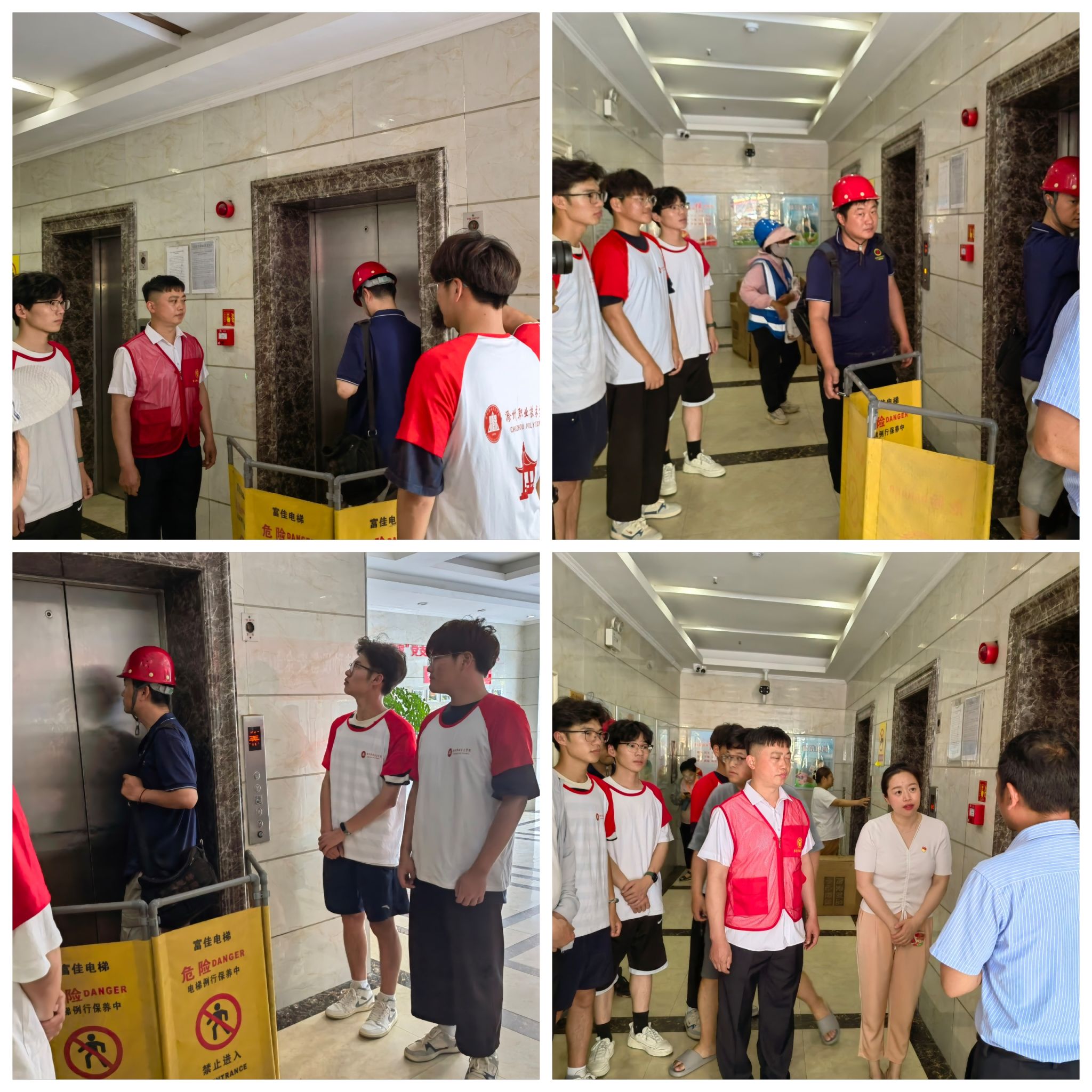 今年6月是全国第22个“安全生产月”,为进一步增强社区居民的安全防护意识和应急自救互救能力。6月27日,信息工程学院团总支5名同学组成的实践分队在朱睿老师的带领下来到滁州市百诚大厦开展电梯应急救援演练志愿服务活动,为社区安全拧紧“安全阀”。
