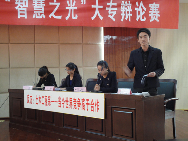 经过淘汰赛和半决赛,土木工程系与经济贸易系成功晋级院第十二届“智慧之光”辩论赛两强。12月5日下午,两强之间的冠军争夺战在五楼报告厅打响,来自基础部、学生处、教务处和院团委的领导、专家担任此次比赛的评委。