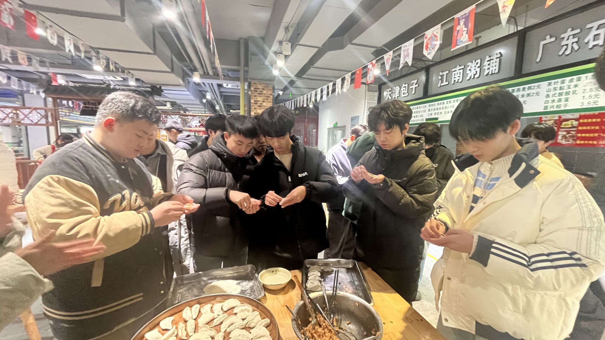 为进一步弘扬中华优秀传统文化,12月22日,食环学院团总支、辅导员老师组织22级化工2班学生在学校美食城二楼开展冬至日包饺子的活动。