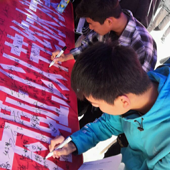节约用水,人人有责!随后,志愿者呼吁同学们在节水横幅上签字,来表示自己节约用水的决心。活动进行的非常顺利,同学们参与的热情也非常高。