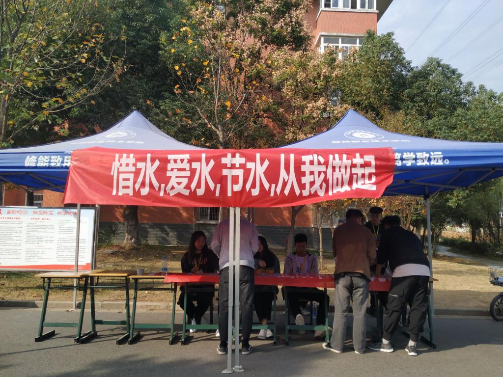 为增强师生节约用水的自觉性,培养同学们养成节约用水的好习惯,2019年11月6日,星期三,上午十点,互联网学院团总支在五号宿舍楼下举办“节约用水”宣传活动。