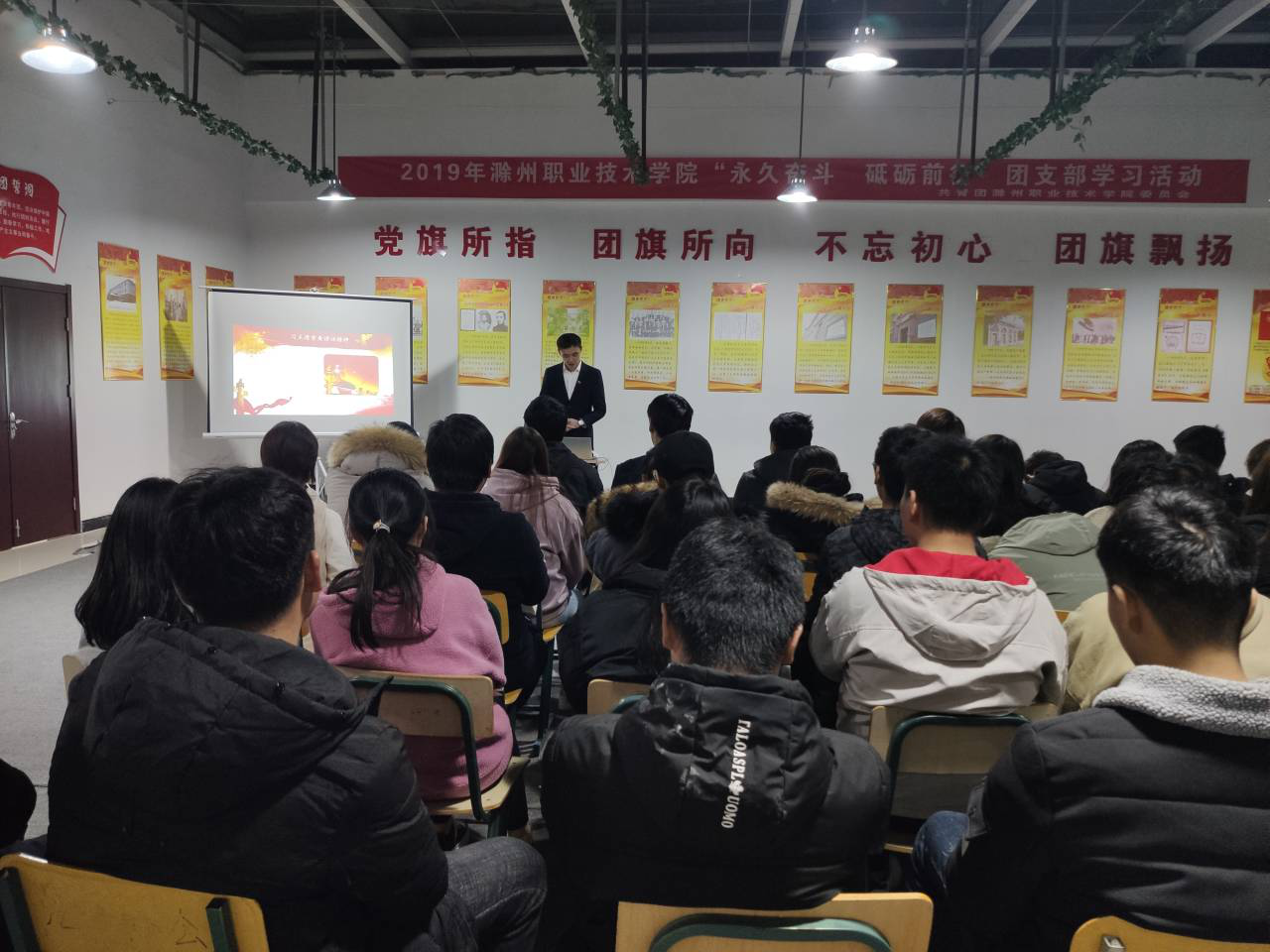 活动中,各班团支书讲解了中国共产党的初心和使命,是为人民谋幸福,为中华民族谋复兴。在课上我们了解到共青团的历程,同时也坚定了以马克思主义为引导,坚持以社会主义核心价值观为引领文化建设制度。这节课让我们了解到了历史的发展历程以及‘不忘初心,继续前进’的意志。