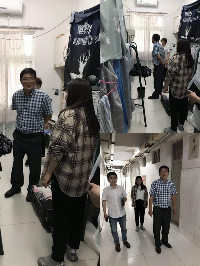最后,互联网学院教学主任涂有羽、周欢、张泽宇以及各年级辅导员对本学期工作进行总结和汇报暑期、开学准备工作安排。会议结束后,马来军带领涂有羽、周欢,18级辅导员周璇来到学生宿舍巡视,了解学生离校情况。