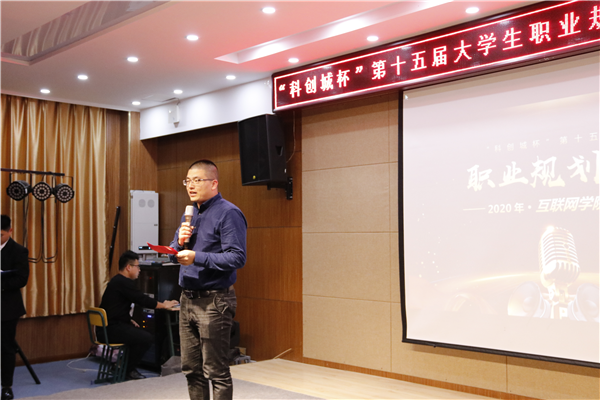 互联网学院院长姚小园致辞活动开幕式,对于20级新生给予最美好的祝福,希望职业规划大赛能给同学们带来收获,希望本次活动,能给为同学们未来职业生涯奠定基础。