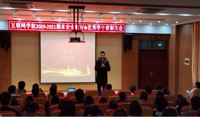 2021年1月4号下午五点,互联网学院在南阶203举行了期末安全教育暨优秀学干表彰大会,莅临本次会议的有互联网学院院长姚小园、互联网学院教学主任涂有羽、19、20级各位讲师、辅导员及各个班级全体班委。
