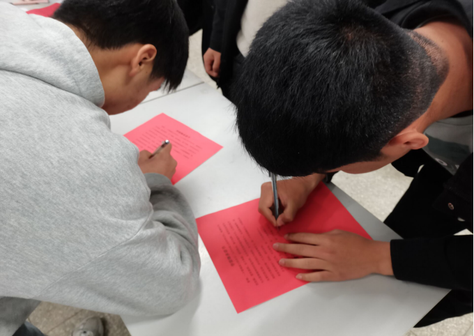 同学们在签名后互相交流,感触校园环境与自己息息相关,纷纷表示人人争当校园文明使者,铭记雷锋精神,践行雷锋行动,为创建文明、和谐、法治、绿色校园贡献自己的青春力量!