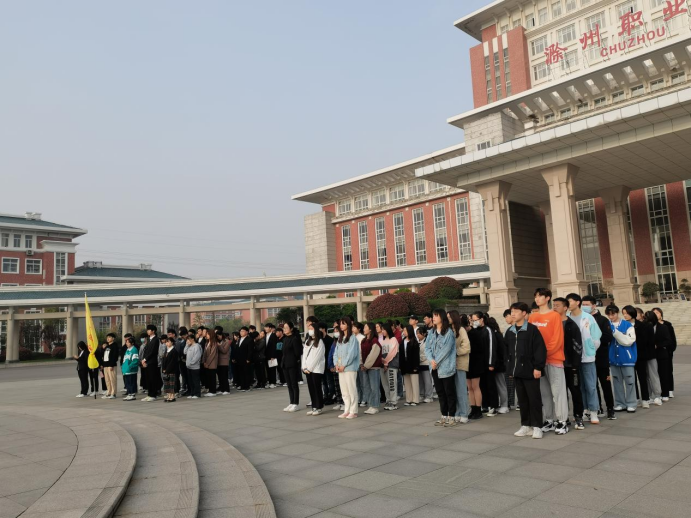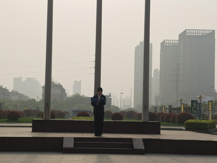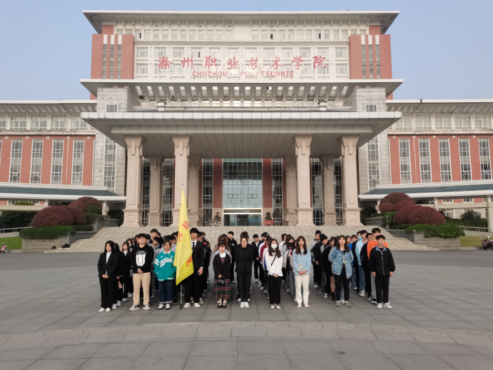 2021年4月16号早晨,互联网学院团总支组织学生在综合楼门前参加“春风化雨沐华夏,改革开放铸辉煌”主题升旗活动。副书记牛雪晴携部分干事参加本次活动。