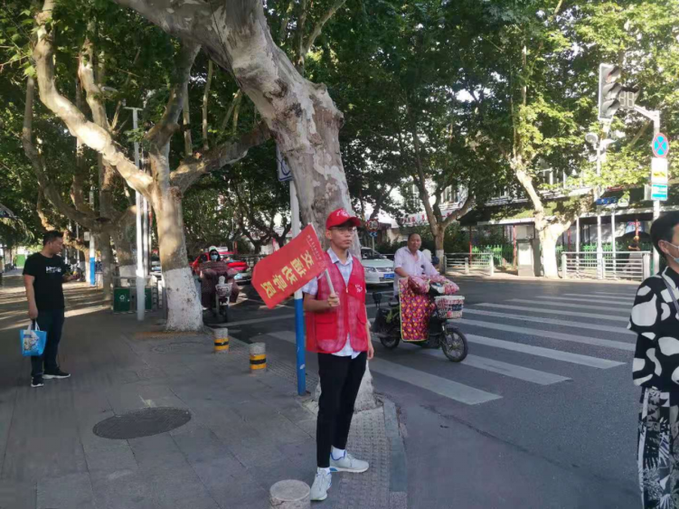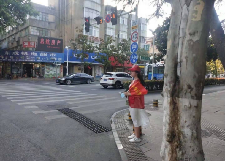当日,志愿者提前到岗,手拿文明提示牌,引导交通参与者遵守交通规则。多名学生干部身穿志愿者服装,手拿小红旗,劝阻非机动车、行人占据机动车道等不文明行为,为过往乘客提供线路咨询,引导他们文明上下车、安全过马路,并主动搀扶老弱病残乘客,捡拾沿途路边垃圾,整理路边无序排放的自行车。