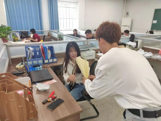 当日学生会的成员起的大早去滁州创达义乌小商品批发市场挑选礼物,几个男生左看右看,这个不行,那个不好也体现出学生对此次活动的重视和用心。学生会主席戴家豪为互联网学院的教师们送鲜花,感谢他们的辛勤劳动,默默付出。