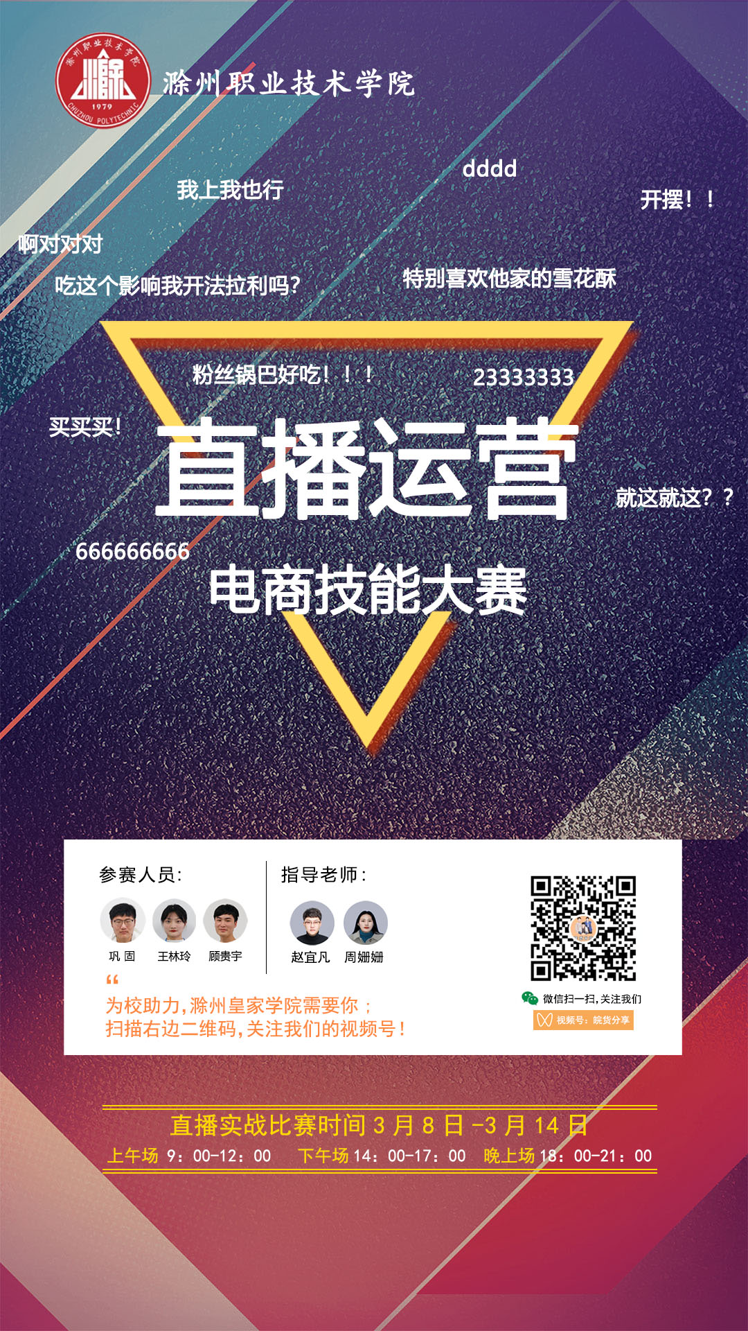 互联网学院正积极参与安徽省职业院校技能大赛“直播运营”赛项,目前直播实战比赛线上直播部分正在进行中。