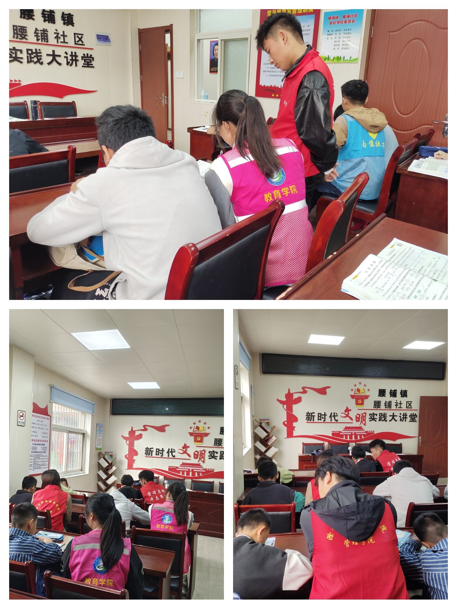 在志愿过程中,志愿者们耐心给孩子们辅导作业,教孩子们识字书写,指引大家智力答题,同时倾听孩子们的心声,关心孩子们日常生活的点滴,给予他们真诚的关怀和爱护。除此之外,青年志愿者还陪同孩子一起画画,一起互动游戏,积极调动现场气氛,共同感受温馨的氛围。