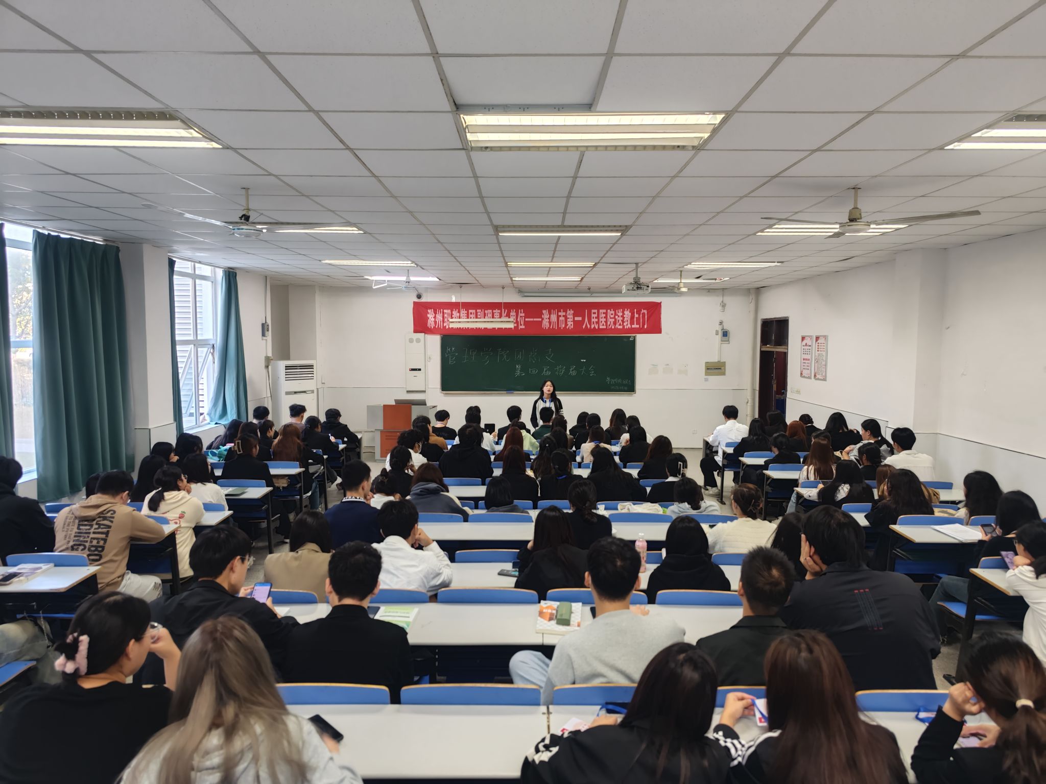 2023年11月1日中午12:00,管理学院团总支在1102教室举行换届大会。为切实加强管理学院团学组织有序发展,完善学生干部队伍建设。第四届团总支干事和第五届团总支干事全体参与。本次换届大会由第四届团总支副书记於美娜主持,团总支书记袁一老师及团总支第四届和第五届的成员参加会议。