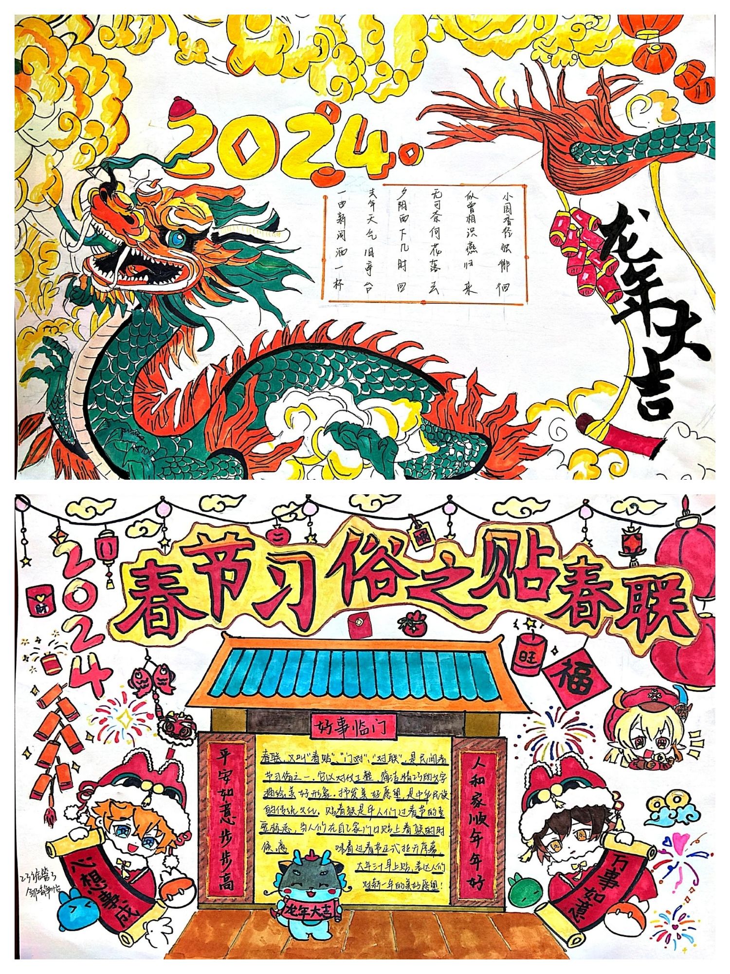 大家热情高涨,纷纷投入到这个具有挑战性和趣味性的活动中。他们不仅精心选择和设计手抄报的版面,还用心挑选和书写每一个字。这种认真和专注的态度,充分展示了他们对传统文化的热爱和尊重。手抄报作品的质量也值得称赞,学生们不仅将传统的对联形式展现得淋漓尽致,还通过手抄报的设计和色彩搭配,赋予了作品新的生命和意义。他们通过自己的理解和感受,将传统与现代相结合,使得手抄报既有传统的韵味,又不失现代的气息。经评比,23旅管二班王九红荣获一等奖,23会计四班张慕涵、23财管二班王天玥荣获二等奖,23旅管二班邹静怡、23会计一班齐亚静、23旅管二班盛音弦荣获三等奖。