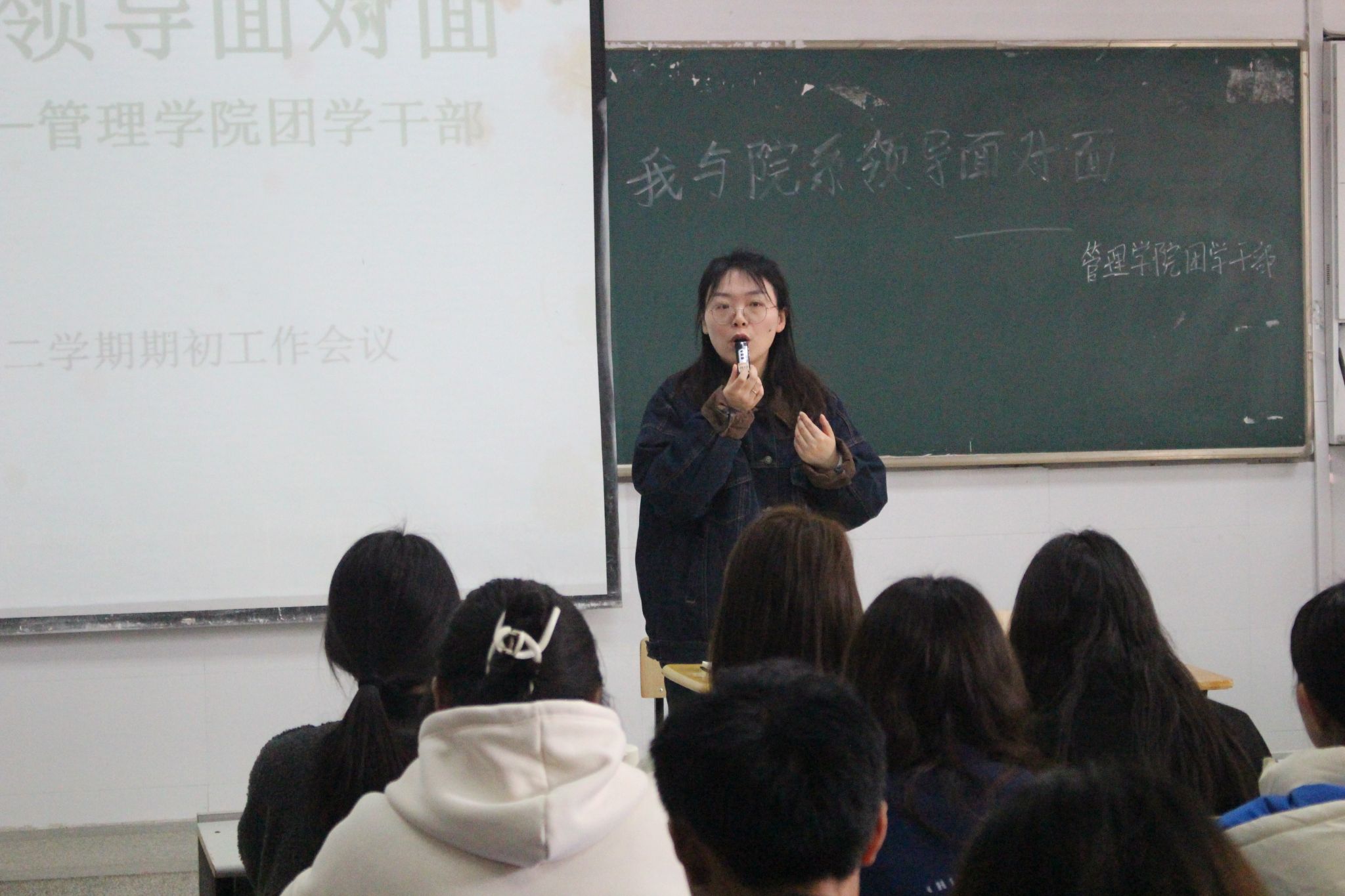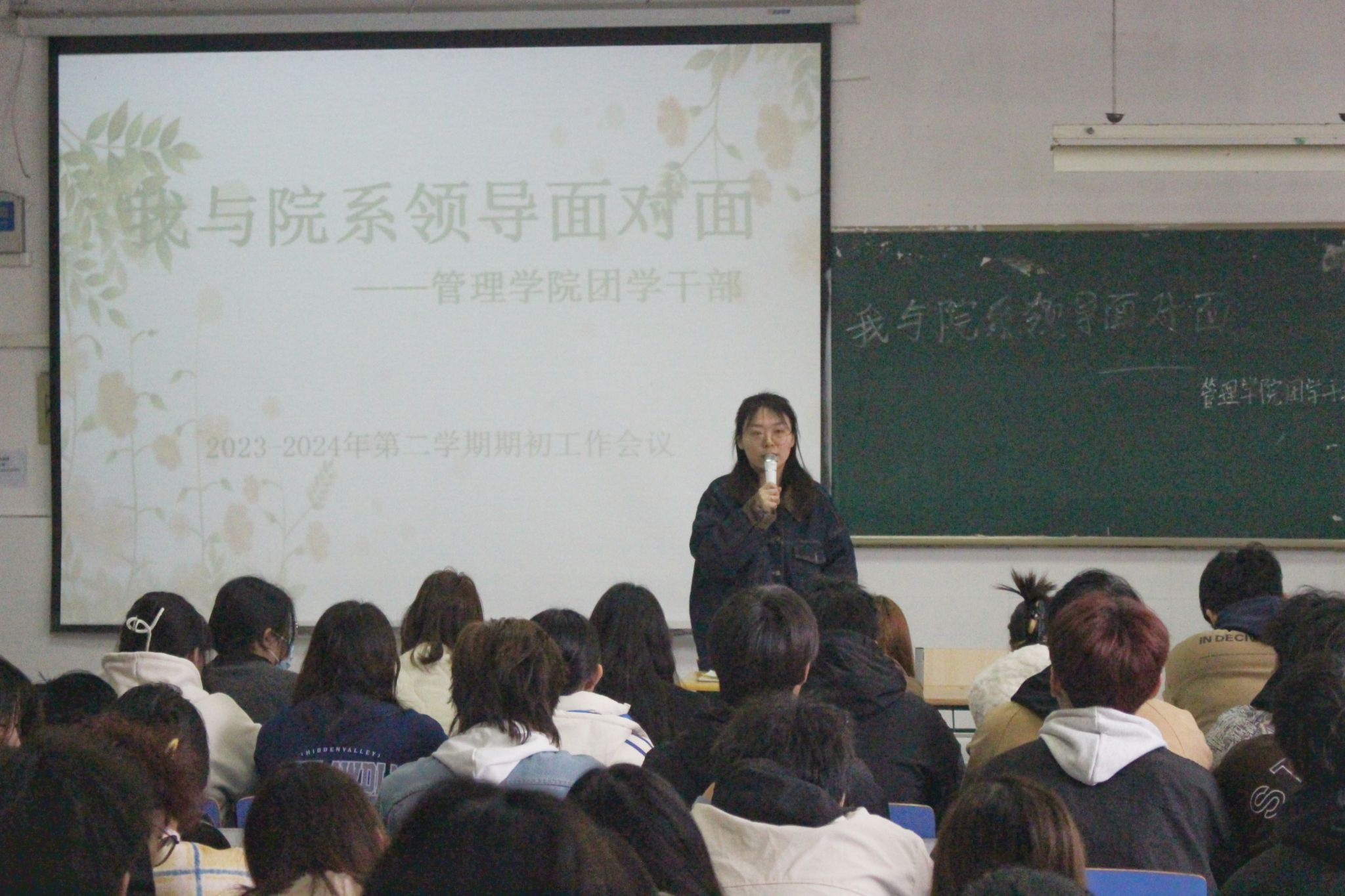 2024年3月12日,管理学院团学干部于中午11时40分在致真楼1101教室召开“我与院系领导面对面”暨团学干部2023-2024学年第二学期培训会议。管理学院团总支书记袁一主持会议。