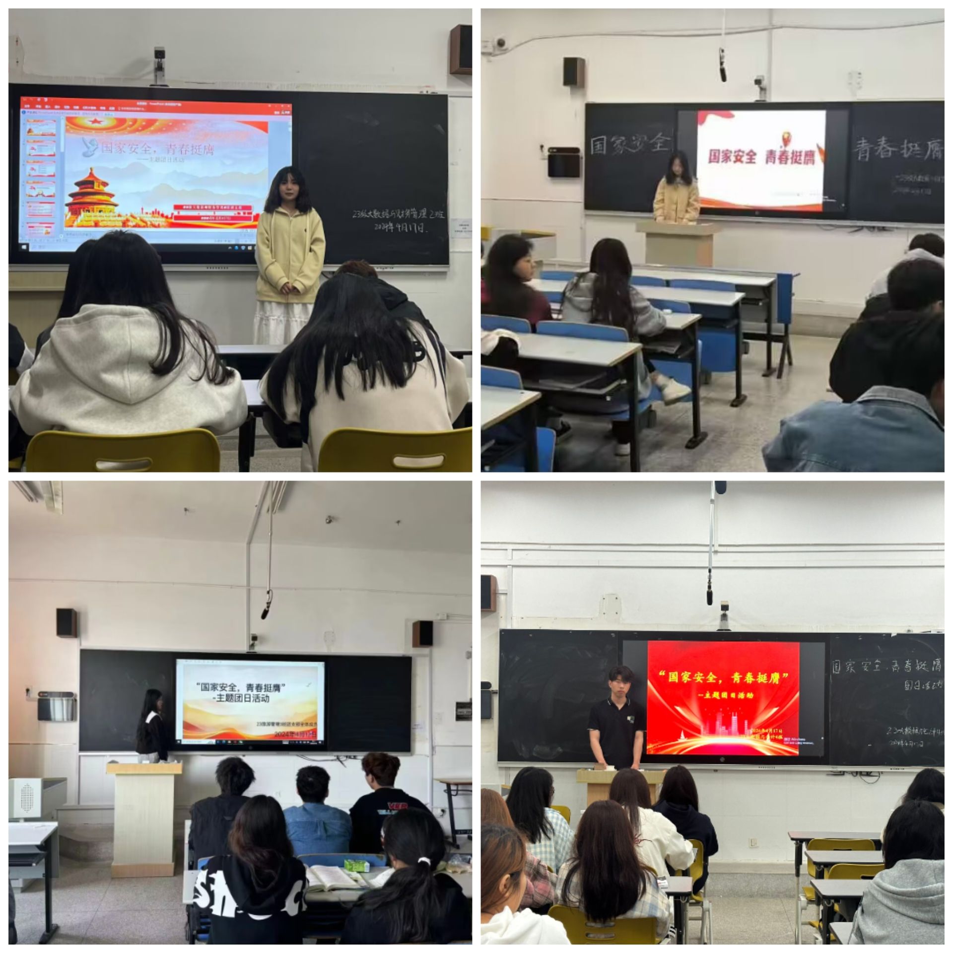 为全面贯彻党的二十大精神,引导广大团员青年深入学习贯彻总体国家安全观,引领广大团员青年坚定不移地走中国特色国家安全道路,管理学院团总支于2024年4月17日中午12:00开展“国家安全,青春挺膺”主题团日活动。活动旨在深入学习国家安全的精神内涵,培养广大团员青年的国家安全意识。各班团支书和宣传委员积极参加。