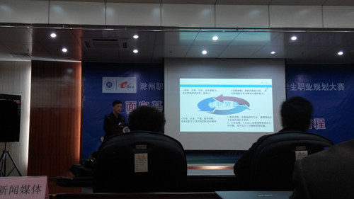 在比赛过程中,选手何子韬、储艳婷借助PPT展示、现场解说等方式畅谈自己的职业规划。他们对职业规划中自我分析、职业预案调整和职业实施策略进行了完美的解说。面对评委的提问,他们冷静思考,认真回答,赢得在场评委及观众认可的一致好评。经过激烈的角逐,经贸系选手何子韬、储艳婷分别获得了此次大赛的金奖和铜奖。