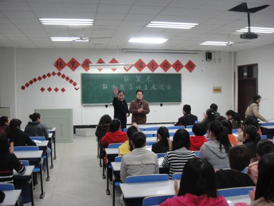 2012年11月7号下午四点,经贸系在1102多媒体教室举行了2012-2013学年第一学期期中师生座谈会。出席座谈会的有经贸系主任翁嘉晨、副主任宋君远、副书记陈开兵及各个教研室的教研室主任和教师代表。经贸系所有班级每个班级派出了2个学生代表参加座谈会。