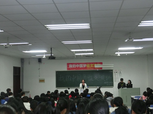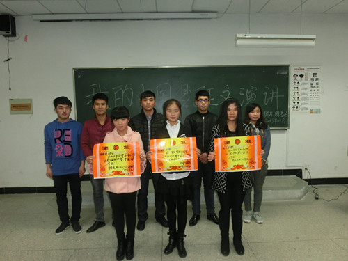 2013年11月17日晚,在经济贸易系党总支的部署下,经济贸易系团总支、学生会举办的第二届“中国梦”征文演讲比赛在1119教室圆满结束。