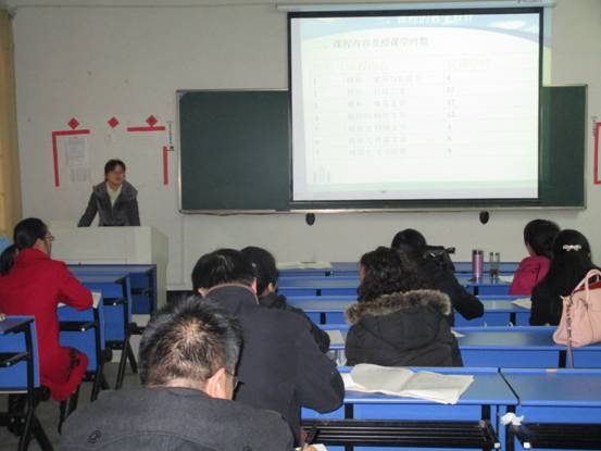 首先,文秘教研室的潘富莲老师从课程性质、教学目标、教学设计、考核方式、课程改革等方面重点介绍了课程《应用文写作》的教学开展情况。