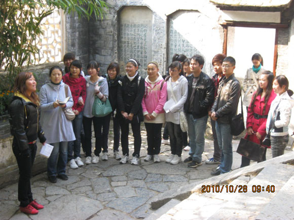 10月25日,根据教学计划的安排,09级旅游管理班在张娴、余莹莹和薛献伟三位老师的带队下走近琅琊山,开始了为期四天的导游景点实训。这项实习是旅游管理专业的核心课程——《导游业务》的重要实训项目,安排在教学计划的第三学期,至今已成功举行了6届。在实习期间,09级旅游管理班学生围绕导游讲解工作以及旅游景区发展与布局进行了学习和实践。