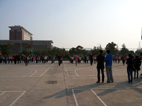 (广播操训练中)