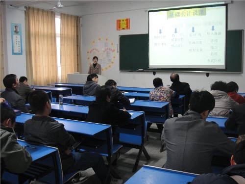随后,经贸系会计教研室缪萍老师,以《基础会计》为例,进行了一次“说课”实战演习。缪老师从说教材、说教法、说学法、说教学过程等方面细致地加以解释与阐述。