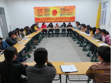 11月20日下午院团委在我系1329教室开展团委工作座谈会。出席此次会议的有院团委程诚副书记、教工团总支书记何文婧以及我系团总支何堃老师,院学生会、社联和各班团学干代表。会前,团委各位老师首先对我系团干们进行了团委的工作问卷调查。会上,各团学干代表积极讨论交流,对团委及学生会各部门工作以及生活中遇到的问题提出建议,团委各位老师针对团干们提出的建议和要求一一作出解答。最后,院团委老师们鼓励团学干们努力工作,积极为学院的工作建言献策。