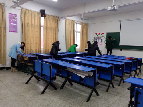本次活动旨在把爱护公物落实到实际行动中。大家齐心协力清除系部各个教室课桌上的涂痕,经过一下午的辛苦奋斗,每个教室都焕然一新。