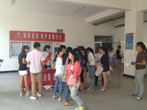 9月4日,经济贸易系联合中国银行滁州分行在致真楼大厅开展了“反洗钱”公益宣传活动。