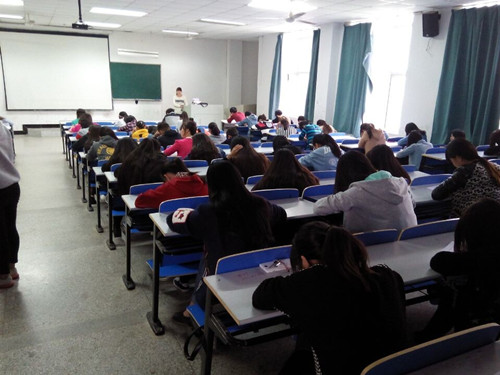 2014年10月17日中午,经济贸易系团总支、记者团在1116教室开展了招新笔试环节,共有100多名大一新生参加。