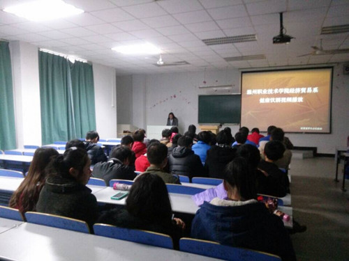 为了营造一个和谐健康的学习成长环境,号召同学们改正不良生活习惯,2014年11月27日,经济贸易系团总支学生会在致真楼1102教室组织开展健康饮酒视频活动。