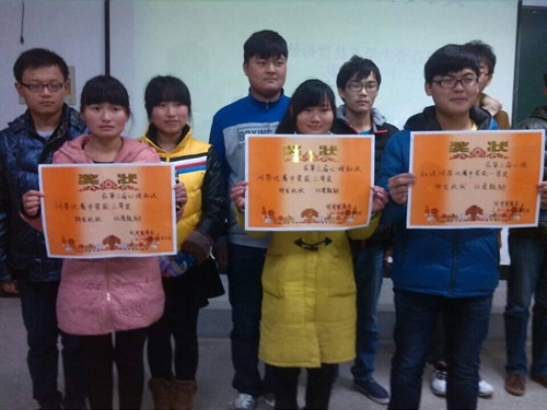此次比赛以“和谐校园,心灵健康”为主题,参赛选手三人为一组,对主持人随机提出的问题进行解答。比赛现场气氛热烈,小伙伴们配合默契。经过激烈的角逐,第六组选手,来自14级电商1班杨涛旭、罗号、王鑫获得第一名,第十六组选手,来自14级会计10班张肖肖、方军、谢瑞磊获得第二名,第三组选手,来自14级金保班黄耀艳、韩莹莹、马正强获得第三名。