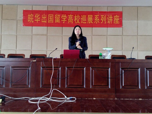 会上,皖华出国留学培训机构负责人为经贸学子讲解了出国留学的途径、费用及相关手续,介绍了出国深造,进行本科、硕士学习等相关问题,鼓励同学们要积极向上,开拓视野,拓宽途径,为自己的未来努力拼搏。