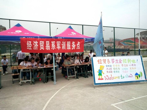 随着军训的开始,在经济贸易系党总支的部署与安排下,经济贸易系团总支、学生会在军训场地设立军训服务点,给新生军训提供最大的保证。