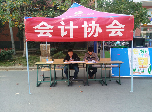 活动过程中,会计协会通过展开条幅、布置展板等方式向同学们介绍会计协会的知识,随后通过与老师学生的交流展开主体性学术交流活动,最后就会计人生、大学职业展开规划学术性演讲。