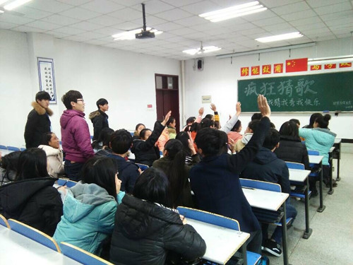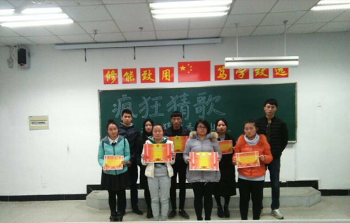 活动中,同学们都很积极,比赛分为抢答和歌词填空两个环节,充分考验了选手们敏捷的应变能力和对歌词的记忆程度。选手们面对挑战毫不畏惧,精彩的活动博得同学们的掌声和喝彩,现场气氛活跃。经过一个多小时的角逐,最终,董行获得了第一名、汪梦珊获得了第二名、王亚男获得了第三名、袁宝婷、王宇坤、赵路晴获得了优秀奖。