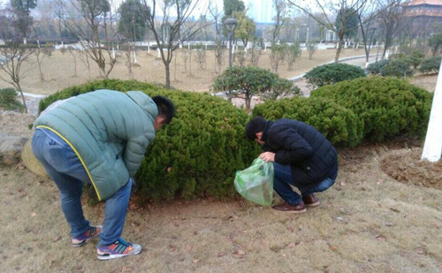 2015年12月14日下午,在经济贸易系党总支书记的部署下、团总支书记何堃的带领下,经济贸易系团总支、学生会积极组织志愿者们来到龙蟠湖公园,进行卫生大清扫活动。