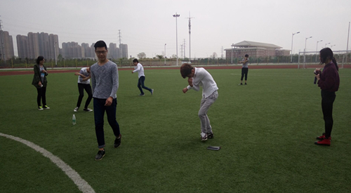 活动过程中,以第一人为基础,相隔6米,然后做大象捏鼻子转圈,每人转10圈,依次接力,同学们配合的非常默契。最终,15级会计8班获得第一名,15级工商企业管理班获得第二名,15级商务英语班获得第三名。