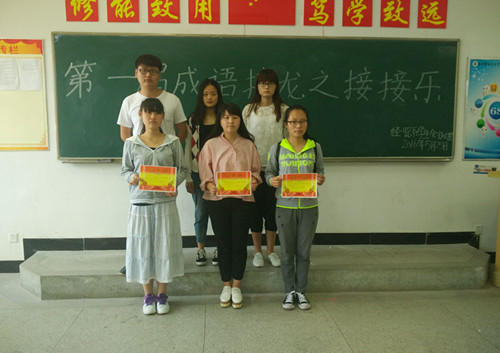 活动过程中,同学们运用平时积累的成语,一个接一个,现场气氛热烈而欢快。最终15级工商企业管理班许颜获得第一名,15级会计9班董艳梅获得第二名,15级国际贸易班侯晨晨获得第三名。