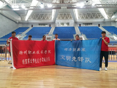 为了通过社会实践开展社区服务,公益服务等各种形式志愿服务活动,让同学们秉承“从实践中来到实践中去”优良传统。2016年6月23日,经济贸易系暑期社会实践小分队来到了滁洲体育馆活动。