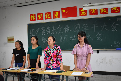 为迎接2016级新生的到来,展现我院学子风采。2016年9月9日,经济贸易系举办了全体团学干大会暨迎新动员大会。