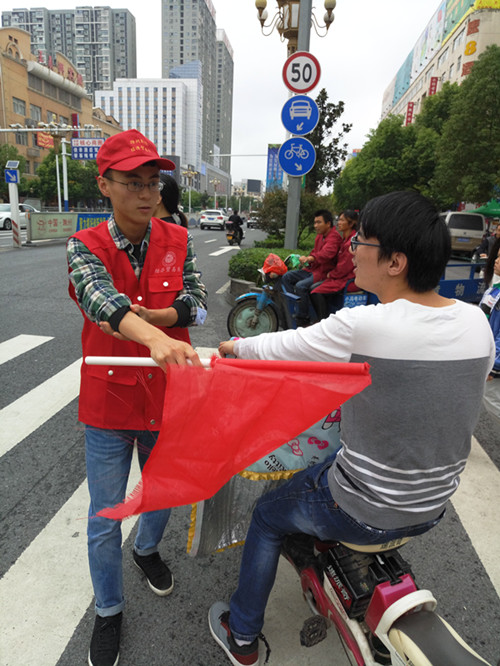 为进一步增强行人的交通安全意识,大力倡导文明交通行为,2016年10月1日-19日,经济贸易系团总支、学生会在天长东路与南谯北路交叉路口开展了“文明交通劝导活动”。