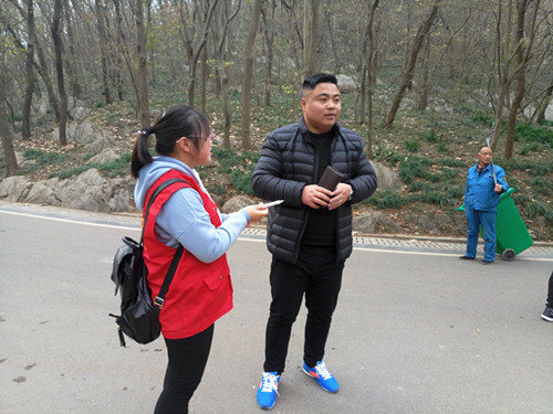 活动现场,一部分志愿者在琅琊山入口和醉翁亭售票口处拉起横幅,并且邀请路人在横幅签名。另外部分志愿者负责任在琅琊山内捡拾游客们扔掉的果皮纸屑。虽然天气很冷,但志愿者热情不减,他们希望在有限的时间内能给更多的游客传递文明旅游的理念,以自身的行动来影响和带动更多的人加入到文明旅游的队伍中来。