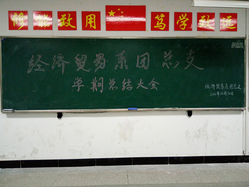 为推动系部团总支工作扎实有效的开展,提高团总支干事的热情和工作质量,2016年12月30日中午,经济贸易系团总支在致真楼1101教室召开了团总支学期总结大会。
