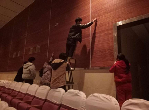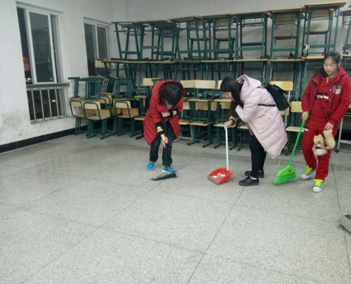 为了保障大礼堂环境内部良好的娱乐环境,营造良好的娱乐氛围,以及进一步美化教室环境,2016年1月3日晚上6点,经济贸易系学生会在大礼堂和系部六楼进行卫生打扫。