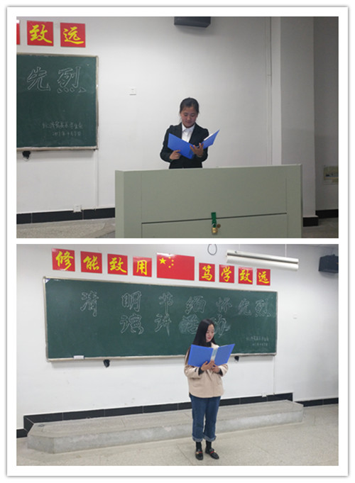 为了使同学们缅怀先烈的丰功伟绩,弘扬爱国主义精神,2017年4月7日晚,经济贸易系学生会在1116教室进行“清明节缅怀先烈之演讲”活动。