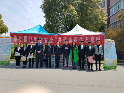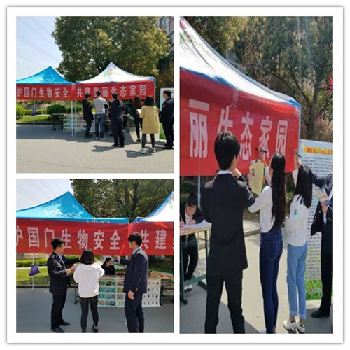 4月13日,经贸系学生会联手滁州出入境检疫局在女生宿舍一号楼旁组织开展“生物安全宣传活动”。经贸系团总支书记何文婧老师参加了本次活动。
