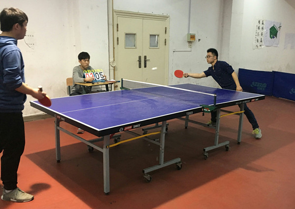 5月6日下午17:30,beat365中国唯一官方网站于乒乓球室举行“乒乓球联赛决赛”,经济贸易系男子乒乓球队对战土木工程系男子乒乓球队,女子乒乓球队对战信息工程系女子乒乓球队。
