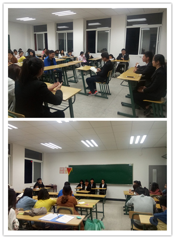 为了提高青少年的思想政治素质,增强拒腐防变能力。2017年5月15日晚7:00经济贸易系16级会计三班在4504教室开展了模拟反腐法庭的团旗活动。