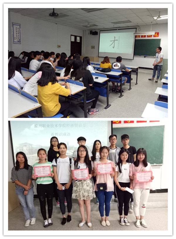 为弘扬国学经典,传承中华经典文化,让学生感受汉语言文字的魅力,2017年5月25日中午12:00,经济贸易系学生会于1116教室举办“看图识成语”活动。